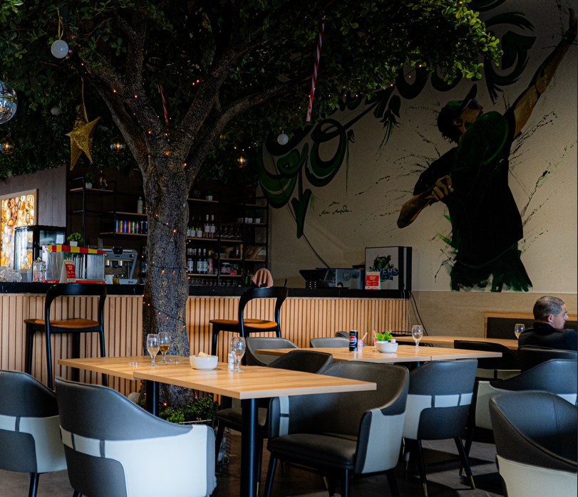 Les tabourets jaunes moutarde au comptoir sont souvent pris d'assaut après 18h. Les tables en bois clair accueillent les groupes qui refont le match. Et notre grande fresque verte ? Elle est devenue le spot photo préféré de nos clients.